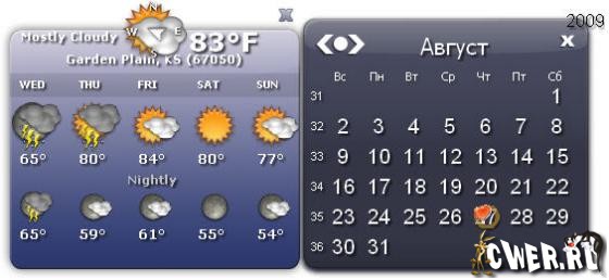 В любое время дня или ночи вы увидите погоду, температуру, дату и время, всего лишь бросив взгляд на трей, где до этого стояли уродливые и безликие часы Windows! Все 33 удовольствия включены в скромный погодный хронометр: выезжающий календарь; 100 видов, на выбор, симпатичных часов; музыкальное оповещение установленных заранее событий с забавными иконками; текущая погода и ее прогноз на 5 последующих дней; всевозможные индивидуальные настройки, ну и само собой, - “атомная синхронизация” системного времени.