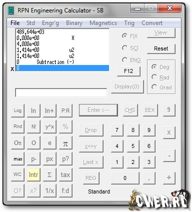 RPN Engineering Calculator - программируемый RPN-калькулятор включает 6 уникальных клавиатур и 15 дискретных калькуляторов для более сложных функций. Отличный выбор для научных руководителей и инженеров. Есть 24 хранения регистров, которые могут быть определены по названию. Существуют функции для преобразования между полярными и прямоугольными координатами. Рассчитывает такие характеристики, как резонансная частота, Закон Ома, параллельный комплекс сопротивления (Зависимость фазы (аргумента комплекса) сопротивления), полиномиальные уравнения, входной и выходной импеданс, и многое другое. Может быть применим для проектирования трансформаторов и индукторов с большим количеством функций. Решает, прямоугольный треугольник, и любой треугольник, звезду, а также вычисляет длину дуги, функции, некоторые гиперболические функции. Преобразует радианы в градусы, часы в минуты и т.д.