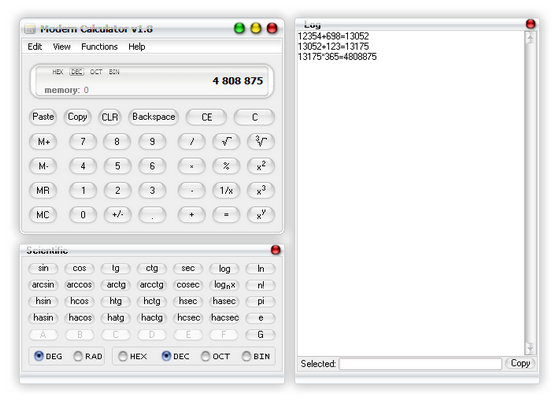 С помощью этого калькулятора можно производить как обычные арифметические расчёты, так и сложные инженерные и тригонометрические вычисления. Кроме того, можно также составлять разнообразные графики, исходя из введённых данных. Программа позволяет вести историю вычислений, которая автоматически сохраняется в отдельном файле.