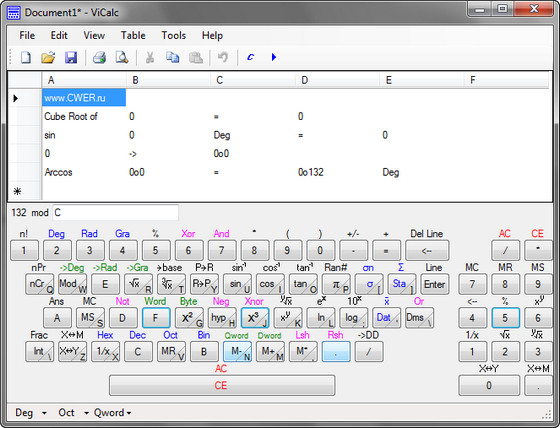 ViCalc - небольшая программа, представляющая собой научный калькулятор с протоколом. Позволяет редактировать, печатать и копировать таблицы в другие приложения. Программа умеет работать с научными константами и единицами конверсии.