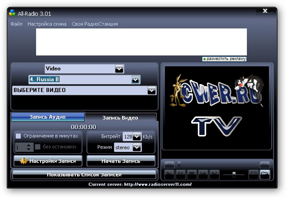 Программа для прослушивания радиостанций и просмотра ТВ-каналов, вещающих через интернет с возможностью записи аудио и видео потока. После установки All-Radio у вас появится доступ к 2500 радиостанциям и 1200 телевизионным каналам со всех уголков планеты (более 100 стран). В программе собраны практически все РАДИО и ТВ станции, вещающие на русском языке. Положительным моментов является то, что вам не надо обновлять программу в целях пополнения списка станций. При запуске последние списки автоматически загружаются с сервера разработчиков.