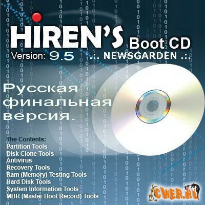 Русская финальная версия спасательного диска Hiren's BootCD 9.5 - незаменимого инструмента, используемый многими компьютерными техниками и системными администраторами. Занимая лишь 100 MB на одном загрузочном CD собраны десятки самых популярных программ и утилит для работы в режиме DOS. Это утилиты для работы с жестким диском, его восстановления и диагностики, утилиты диагностики всех узлов компьютера, файловые менеджеры, утилиты для работы в сети, а также многие другие. Hiren's BootCD избавляет от необходимости держать под рукой десятки и десятки дисков с необходимыми в ежедневной работе программами.