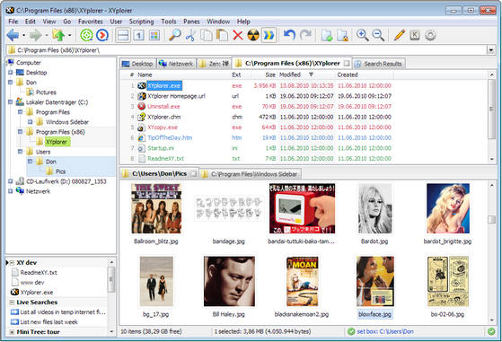 XYPlorer - расширенный файловый менеджер, ориентированный на пользователей, которые хотят найти достойную замену стандартному проводнику Windows. Программа обладает большой функциональностью и множеством дополнительных возможностей. Основной особенностью этой утилиты является возможность открытия каждого окна в новой вкладке основного окна данной программы. В программе имеется мощный поиск файлов, универсальные средства предварительного просмотра и хорошо настраиваемый интерфейс. Также, стоит отметить, что программа не требует обязательной установки на компьютер, тем самым позволяя запускаться с любого цифрового носителя, например, с USB флэш диска. Программа не вносит никаких записей в системный реестр и хранит все файлы в папке программы.