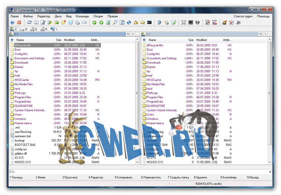 Total Commander - популярный файловый менеджер с практически всеми необходимыми для таких программ функциями. Кроме всех функциональностей, характерных для файловых менеджеров, в Total Commander встроены очень удобные просмотрщики для мультимедиа и графических файлов, распаковщики ZIP, ARJ, LZH, RAR, UC2, TAR, GZ, CAB, ACE и дополнительные dll для других архивных файлов; встроенный ftp-клиент - вообще просто прелесть: можно скачивать/закачивать файлы в несколько потоков, есть докачка, поддержка www-прокси при работе с ftp и есть даже такая функция, как подключение-скачивание-отключение в заданное время к заданному ftp. Не будут лишними и такие функции, как UUE/MIME/XXE кодирование/декодирование и разрезка/склейка длинных файлов, а также множество других функций, крайне необходимых для работы с файлами.