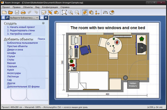 Room Arranger - программа для разработки дизайна помещений и интерьеров. Вы затеяли перестановку в своей квартире и сомневаетесь куда и что передвинуть? Собираетесь сделать перепланировку и перенести стены. Тогда программа Room Arranger для Вас! Она поможет не только двигать, но и вращать, менять раскраску и размеры, и создавать такие элементы гарнитура, которых пока у вас ещё нет и может даже вы о них не думали. А потом, можно посмотреть, как всё это будет выглядеть в 3D варианте.