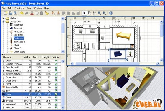 Sweet Home 3D - бесплатная программа для помощи в оформлении дизайна жилых помещений и проектирования интерьеров, не требующая специальных навыков.