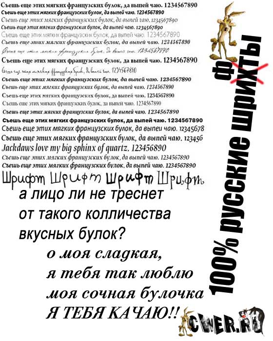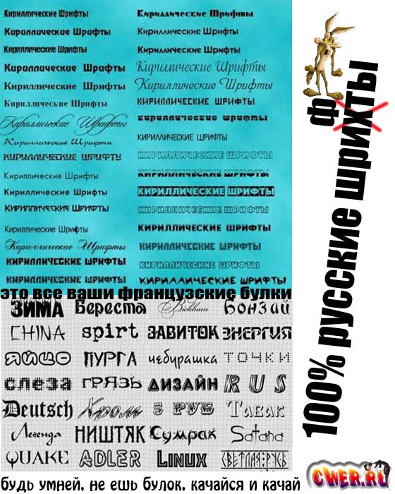 Большая коллекция шрифтов на любой вкус. Кириллические, латинские c русской кодировкой. Шрифты упорядочены по тематике.