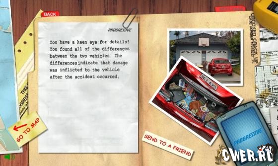 Вы - агент в специальной расследовательном институте. Ваша задача состоит в том, чтобы исследовать подозрительные ситуации связанные с автострахованием. Хоть игра и флеш, и весит мало, в ней присутствует такие жанры как поиск, логические задачи, например: собрать паззл, или найти различия.