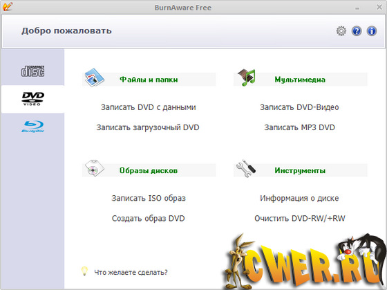 BurnAware Free - относительно небольшая, бесплатная и простая в использовании программа для записи информации и музыкальных композиций на CD, DVD, Blu-Ray и HD-DVD диски, которая пригодится как опытным пользователям, так и новичкам. BurnAware поддерживает работу со всеми типа оптических дисков (включая CD-R/RW, DVD-R/RW, DVD+R/RW, BD-R/RE, HD-DVD-R/RW и DVD-RAM) и аппаратными устройствами записи. Утилита поддерживает создание образов, способна писать мультисессионные диски, имеет опцию проверки записанного содержимого, работает под операционными системами Windows 98/ME/NT/2000/XP/Vista (32/64-bits).