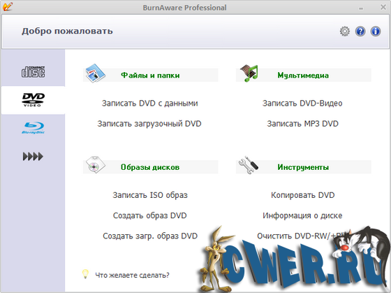Простая и в тоже время мощная программа для записи и копирования любых дисков - CD, DVD, Blu-Ray и HD-DVD, а также копирования CD и DVD. Программа позволяет выполнять все основные задачи по записи: работа с носителями CD/DVD, Blu-Ray; запись Audio CD и DVD-Video; копирование и прожиг образов; клонирование дисков; поддержка мультисессии, также имеет дополнительные инструменты для созданий копий CD и DVD с фотографиями, документами, фильмами, играми и музыкой и многое другое. Имеется поддержка Windows Vista.