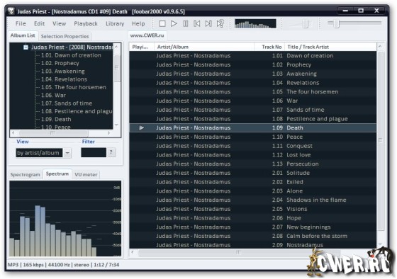 foobar2000 - аудиоплеер, основные черты которого качественный звук, широкие возможности настройки, спартанский интерфейс и низкие системные требования. Foobar проигрывает файлы форматов MP1, MP2, MP3, MP4, MPC, AAC, Ogg Vorbis, FLAC / Ogg FLAC, WavPack, WAV, AIFF, AU, SND, CDDA, WMA (другие форматы могут поддерживаться при установке соответствующих плагинов). Имеется полная поддержка unicode. В программе использован новый формат плейлистов (m3u8) и поддерживается чтение APEv2-тэгов из файлов MP3.
