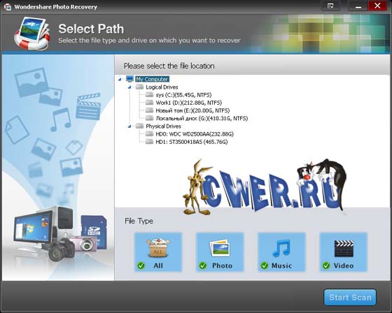 Wondershare Photo Recovery - программа для восстановления потерянных или поврежденных фотографий, видео и музыки с компьютера, фотоаппарата, USB флеш карты, SD карты и других устройств. Если вы случайно удалили файлы, отформатировали диск или потеряли все фотографии вследствие поломки компьютера - Wondershare Photo Recovery поможет восстановить их в несколько щелчков мышки.
