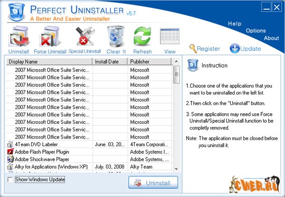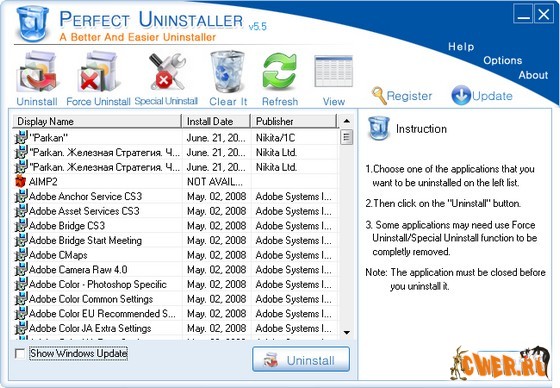 Программа Perfect Uninstaller - это лучший и простой способ полного удаления любых ненужных приложений, которые стандартная программа установки и удаления не может корректно стереть. С помощью этой программы Вы можете удалять ненужные приложения в Вашей системе быстро и легко. Стандартный компонент установки и удаления программ часто не может удалить определенные приложения или сломанные ключи реестра. В отличие от этого компонента, программа Perfect Unistaller не только удаляет сами приложения, но и очищает ваш ПК от битых ключей реестра, улучшая производительность и скорость Вашего компьютера!