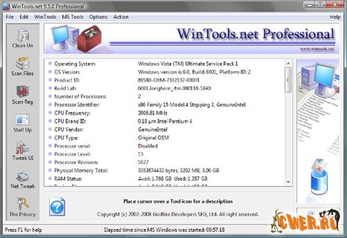 WinTools.net Ultimate – набор инструментов для оптимизации операционной системы Windows. В состав программы входят компоненты для полного удаления нежелательных программ и «мертвых» ссылок реестра, а также для контроля процессов, настройки системы, интернет-соединений и интерфейса. Кроме того, имеются утилиты для надежного хранения конфиденциальной информации. Работает на платформах Windows 2000, 2003, XP и Vista.