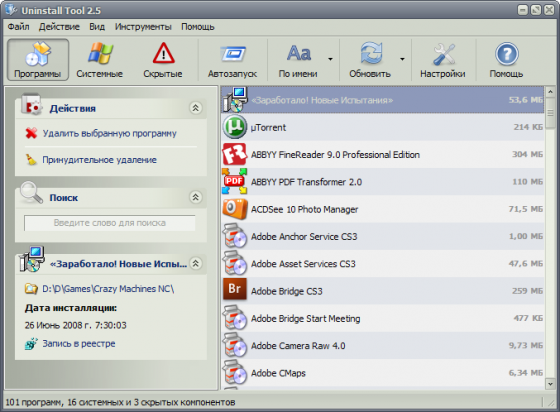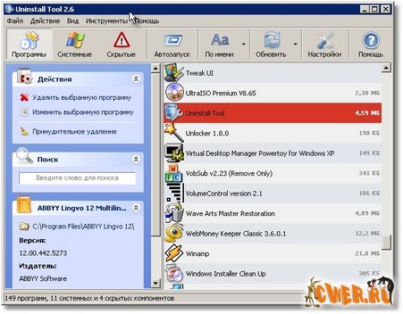 - удаление программ, деинсталляция которых стандартными средствами невозможна.