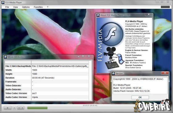 FLV-Media Player - это потрясающий Flash видео проигрыватель, который позволяет Вам просматривать любые загруженные видео-файлы формата .flv и H.264. Не требует предварительно установленного Плагина Adobe Flash OCX.