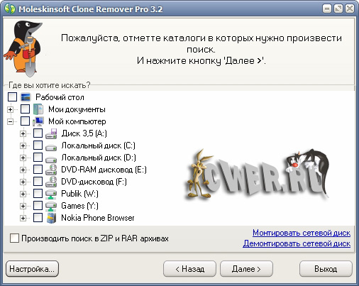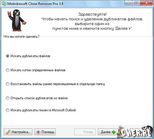 Moleskinsoft Clone Remover – мощная программа, которая осуществляет поиск дубликатов (одинаковых) файлов. Она поможет найти любые одинаковые файлы на вашем компьютере, не исключая RAR и ZIP архивы. Например: Файлы изображений, музыки(mp3) и не только.