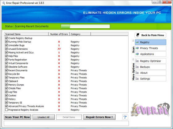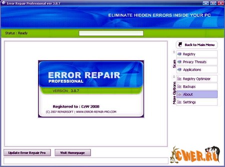 Error Repair Professional - служит для того, чтобы содержать Ваш PC в оптимально работающем состоянии. Очистит и восстановит ошибки в Вашем PC единственным щелчком мыши.