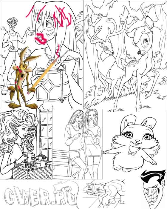 Еще одна замечательная новость с добрыми и интересными детскими раскрасками. В этой части работы на любой вкус и для детей всех возрастов - раскраски из мультфильмов и фильмов, из сказок, комиксов и передач. Раскраски для девочек и для мальчиков. Разные и много. И главное - их становится всё больше и больше. Я же, надеюсь, у Вас получится разукрасить гораздо лучше, чем это выходит у нашего неуклюжего героя Койота!