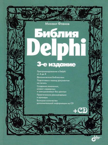 Книга посвящена программированию на языка Delphi от самых основ до примеров построения конкретных приложений. Подробно описывается логика выполнения каждого участка кода, чтобы читатель смог использовать эти знания при решении собственных задач. В третьем издании материал исправлен и переработан с учетом новых возможностей пакета.