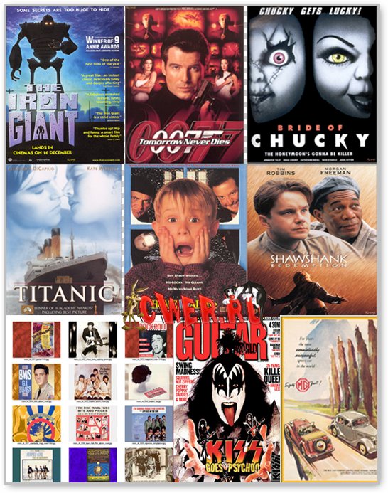 Подборка из старых рекламных плакатов, обложек, постеров, и т. д., в количестве 3200 штук конец 20го - начало 21 века! Архив упорядочен по разделам: автомобили, музыка, фильмы, еда и напитки.