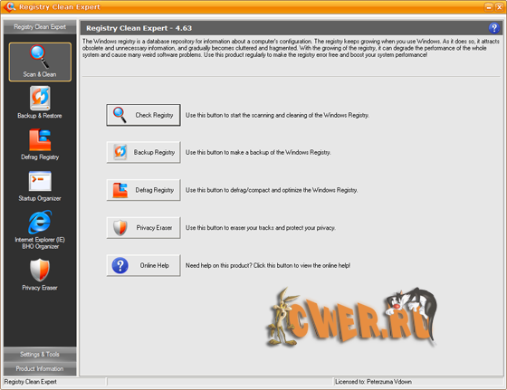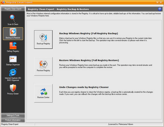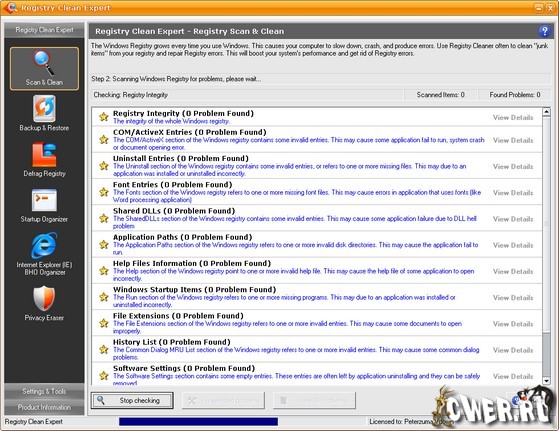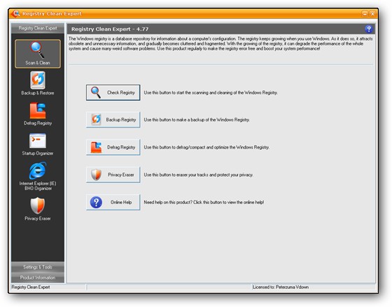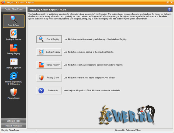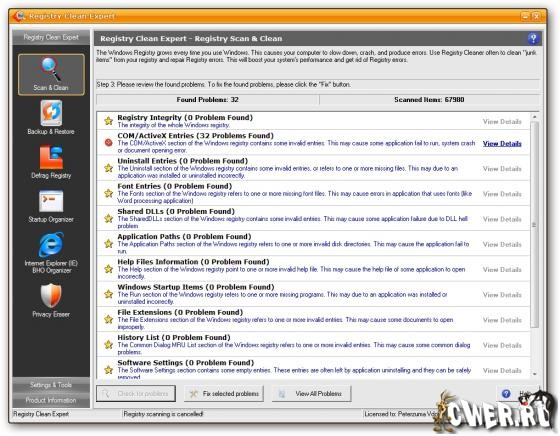 Registry Clean Expert - программа для сканирования реестра на предмет неправильной или устаревшей информации. Благодаря изменению таких данных в реестре система начинает работать быстрее и без ошибок. Программа имеет опцию резервного копирования и восстановления реестра на случай, если система даст сбой. Кроме этого, используя Registry Clean Expert, вы можете управлять приложениями, которые запускаются вместе с Windows и Internet Explorer.