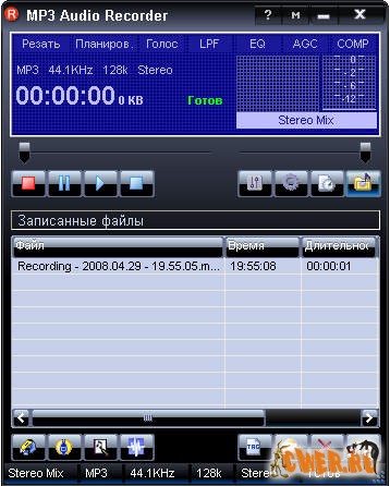 Полученные звуковые файлы пишет на хард в форматы .WAV, .MP3, .WMA, .OGG, .VQF формате. Есть встроенный редактор, в котором можно сократить, скопировать звуковые файлы и обогатить звук, добавляя эффекты из списка DSP.