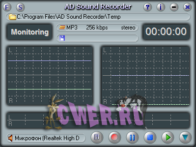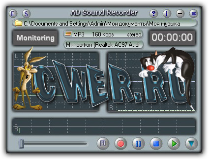 AD Sound Recorder - небольшая программа для записи аудио. AD Sound Recorder поддерживает три вида форматов звуковых файлов - WAV, MP3 и WMA. С AD Sound Recorder Вы сможете записать звук с микрофона, потоков аудио из Интернета, или музыку, которая проигрывается Winamp, Windows Media Player, Quick Time, Real Player, Flash, games, и т.д. не теряя качества. AD Sound Recorder предоставляет зрительные образы входящего звука. Вы можете настроить громкость записи, приостанавливать или возобновлять запись по своему желанию.