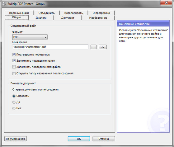 BullZip PDF Printer - утилита для создания файлов PDF. Она устанавливает в системе виртуальный принтер, при печати на который автоматически создается файл PDF. PDF Printer позволяет изменять разные параметры PDF-документа. Присутствует возможность устанавливать на открытие файла пароль, зашифровывать документ, используя 128-битное шифрование, добавлять "водяные знаки" и задний фон, изменять размер и прозрачность, разворачивать страницы и многое другое. Кроме того, PDF Printer может объединять несколько PDF-документов в один и разбивать его на части.