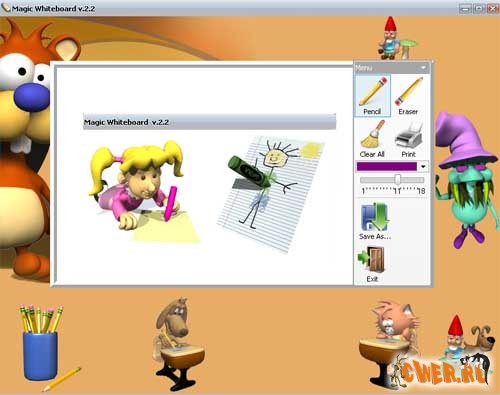 Программа разработана для того, чтобы научить детей рисовать. Простота в работе и забавные персонажи доставят много радости Вам и вашим детям! Красочная программа для рисования по сети, созданная специально для детского развлечения.
