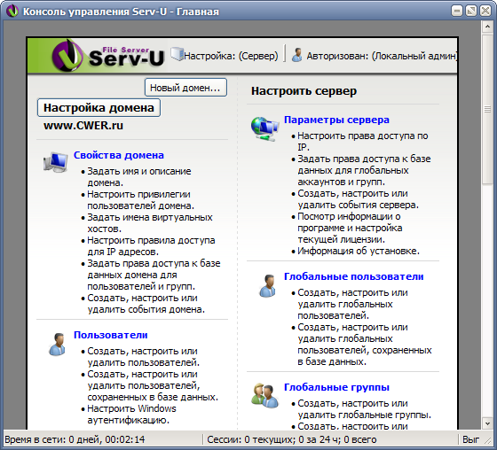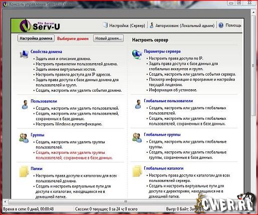 Serv-U - FTP-сервер с высокой степенью защищенности, предназначенный для создания серверов любого размера. Характерная особенность - открытая архитектура, позволяющая без особого труда расширять, дополнять и модернизировать сервер за счет использования внешних DLL.