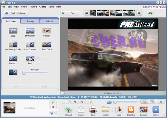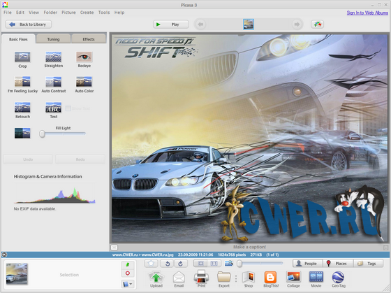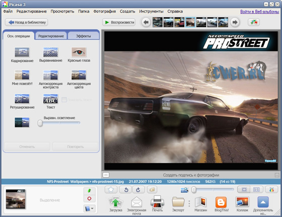Picasa – бесплатная программа от Google для организации, редактирования и печати фотографий, хранящихся на вашем компьютере. Основной ориентацией приложения является работа с цифровым фото содержимым на персональном компьютере пользователя. При каждом запуске Picasa автоматически сканирует жесткие диски на предмет новых фотографий и добавляет их к себе в библиотеку по датам и именам папок, в которых они оригинально находились, выстраивая их в цепочку. Позволяет создавать фотоальбомы, записывать их на оптические носители, производить базовое редактирование и применять различные эффекты. Третья версия программы поддерживает еще больше - до миллиона - фотографий на компьютере! Кроме того, внесено множество других усовершенствований, которые должны вам понравиться.