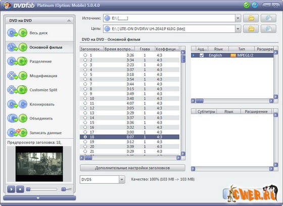 Oбновилась уникальная программа DVDFab - быстрый и простой способ для копирования DVD. Никакой потери качества. Программа является одной из лучших на сегодняшний день инструментов для копирования, разбиения, пережатия и конвертирования DVD дисков с фильмами.