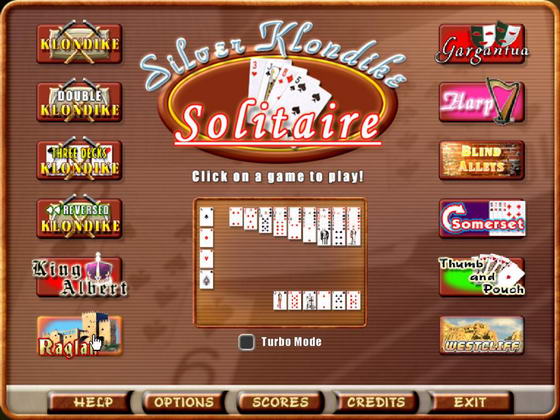 Silver Klondike Solitaire представляет собой набор из 12 самых популярных пасьянсов Клондайк в мире.