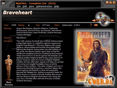 Фильмы на DVD давно перестали быть редкостью, и сегодня встречаются коллекционеры, имеющие по несколько сотен дисков. Такие собрания требуют организации и порядка. Программа MyDVDs поможет упорядочить обширную коллекцию. Ее можно использовать не просто как каталог, но и как советчика, который подскажет, что посмотреть. А все потому, что она заносит в базу данных не только название фильма, но и подробную информацию о нем. Все эти данные MyDVDs получает из Интернета, поэтому никакого ввода сведений вручную не требуется. Автоматически из Сети загружается и обложка.