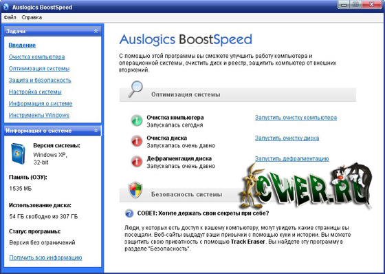 AusLogics BoostSpeed - популярная утилита для ускорения работы системы Windows, программ и Интернет-соединения от компании AusLogics. Программа оптимизирует компьютерную память, ускоряет загрузку Windows, повышает быстродействие Microsoft Office, The Bat, FireFox, Opera, Skype, чистит реестр и диск компьютера.