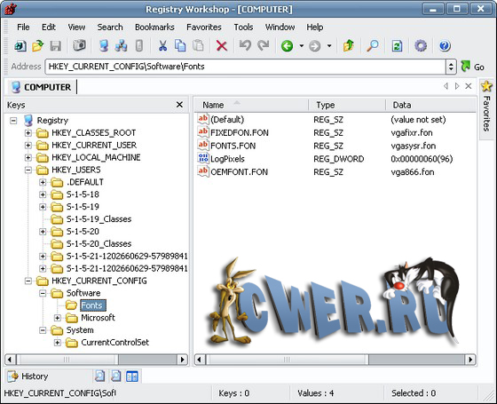 Registry Workshop представляет собой альтернативный вариант стандартному редактору реестра RegEdit. Программа позволяет создавать резервную копию части системного реестра, делать его периодическое восстановление, редактировать значение ключей и параметров и т. д. Программа проста в использовании и имеет понятный интерфейс.