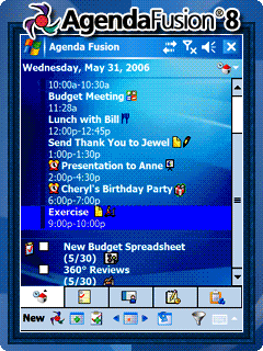 Agenda Fusion - один из самых популярных планировщиков и PIM приложений, полностью меняет облик меню Contacts, Month, Week, Today и Tasks и обладает полным набором функций «персонального информационного помощника». 7 различных видов представления данных помогут с удобством работать с событиями, задачами.