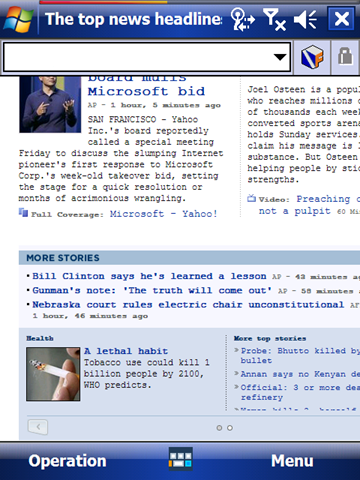 NetFront Browser - Мощный веб-браузер, практически по всем параметрам значительно превосходящий встроенный в систему Pocket Internet Explorer. Поддерживается многооконный режим работы и zoom-режим, подстройка размеров изображений, закачка файлов, индивидуальная настройка прокси, сохранение картинок и многое другое.