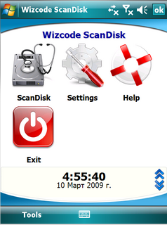 Программа является мощным инструментом для сканирования карты памяти на предмет ошибок: ошибки приложений, системные ошибки, вирусы... ScanDisk находит и устраняет проблемы которые могли Вам нанести критические файлы на Windows Mobile устройстве и тем самым улучшая работу системы.
