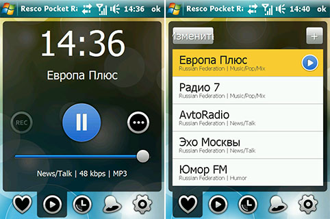 Resco Pocket Radio - предназначена для прослушивания и записи программ интернет-радиостанций. Начало записи можно выставить на определенную дату и время. Информация о радиостанциях удобно структурирована.