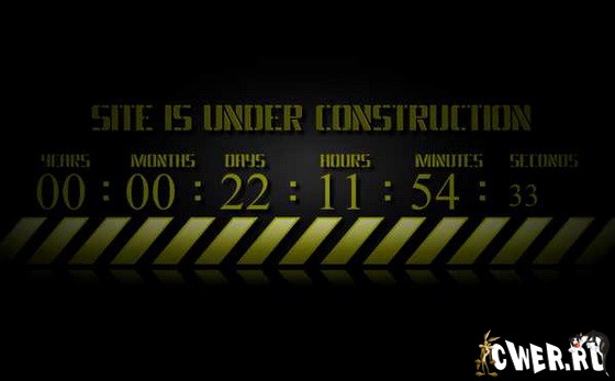 Флеш счетчик "Under construction" автоматически подсчитывает время пока сайт находится на реконструкции. Дату начала отсчета легко изменить в текстовом файле Release.txt. Шрифт прилагается.