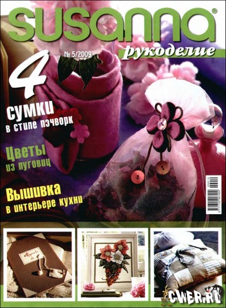 Журнал по различным видам рукоделия: вышивке крестом (вышитые занавески, подушки, картины, абажур, шкатулки на разнообразные сюжеты), пэчворку (подушки, картины, сумки), вышивке пуговицами, вязанию (картины и подушки с узорами из шерсти).