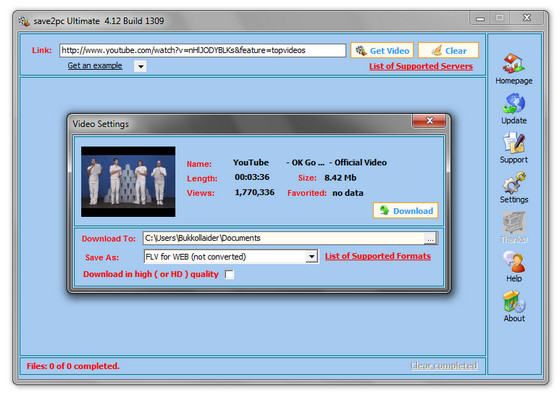 Save2pc - новая версия программы для загрузки и конвертирования видео файлов, размещенных на популярном видео-хостинге YouTube.
