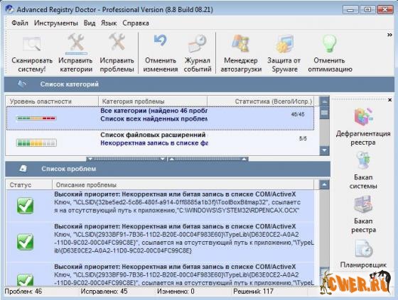 Advanced Registry Doctor - сканирует реестр, диагностирует и лечит всевозможные проблемы, которые могут приводить к некорректной работе системы. Таким образом, система станет загружаться быстрее и работать лучше. Кроме того, в программу входит функция дефрагментации реестра, встроенный планировщик, функция создания резервных копий и восстановления и многое другое. Автоматическая функция исправления ошибок поможет любому, независимо от его компьютерных знаний, очистить реестр всего одним кликом мыши. Опытные пользователи, смогут исправлять ошибки реестра вручную.
