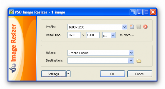 VSO Image Resizer - программа для изменения размеров цифровых картинок и изображений в различных графических форматах (на данный момент поддерживается работа с файлами JPEG, GIF, BMP, TIFF, CR2, NEF и т.д.). Также в утилите имеются возможности для компрессии файлов, конвертирования из одного формата в другой, экспорта и управления картинками. VSO Image Resizer интегрируется в оболочку Windows, может работать в пакетном режиме, обладает расширенными опциями настройки для продвинутых пользователей.
