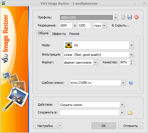VSO Image Resizer - программа для изменения размеров цифровых картинок и изображений в различных графических форматах (на данный момент поддерживается работа с файлами JPEG, GIF, BMP, TIFF, CR2, NEF и т.д.). Также в утилите имеются возможности для компрессии файлов, конвертирования из одного формата в другой, экспорта, наложения прозрачных прозрачных и управления картинками. VSO Image Resizer интегрируется в оболочку Windows, может работать в пакетном режиме, обладает расширенными опциями настройки для продвинутых пользователей.