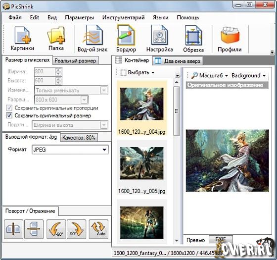 PicShrink – это полезная сервисная программа для цифровых изображений.Запросто сжимает множество форматов изображений (bmp, jpg, gif, png, wmf, emf), используя мощную систему сжатия, уменьшения больших размеров файла ваших изображений, оптимизирования картинок для быстрой загрузки из Web, отправляйте по электронной почте маленькие изображения быстро и не превышая ограничений по отправке вложений. Также к характеристикам относится пакетное преобразование файлов и сервисные программы по добавлению водяных знаков.