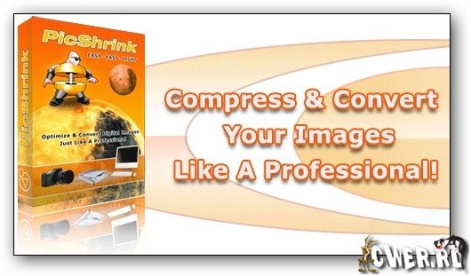 PicShrink – это полезная сервисная программа для цифровых изображений. Запросто сжимает множество форматов изображений (bmp, jpg, gif, png, wmf, emf), используя мощную систему сжатия, уменьшения больших размеров файла ваших изображений, оптимизирования картинок для быстрой загрузки из Web, отправляйте по электронной почте маленькие изображения быстро и не превышая ограничений по отправке вложений. Также к характеристикам относится пакетное преобразование файлов и сервисные программы по добавлению водяных знаков.