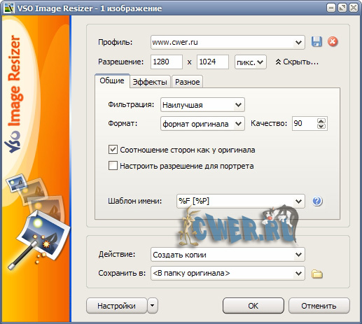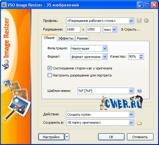 VSO Image Resizer - бесплатная программа для изменения размеров цифровых картинок и изображений в различных графических форматах (на данный момент поддерживается работа с файлами JPEG, GIF, BMP, TIFF, CR2, NEF и т.д.). Также в утилите имеются возможности для компрессии файлов, конвертирования из одного формата в другой, экспорта, наложения прозрачных прозрачных и управления картинками. VSO Image Resizer интегрируется в оболочку Windows, может работать в пакетном режиме, обладает расширенными опциями настройки для продвинутых пользователей.